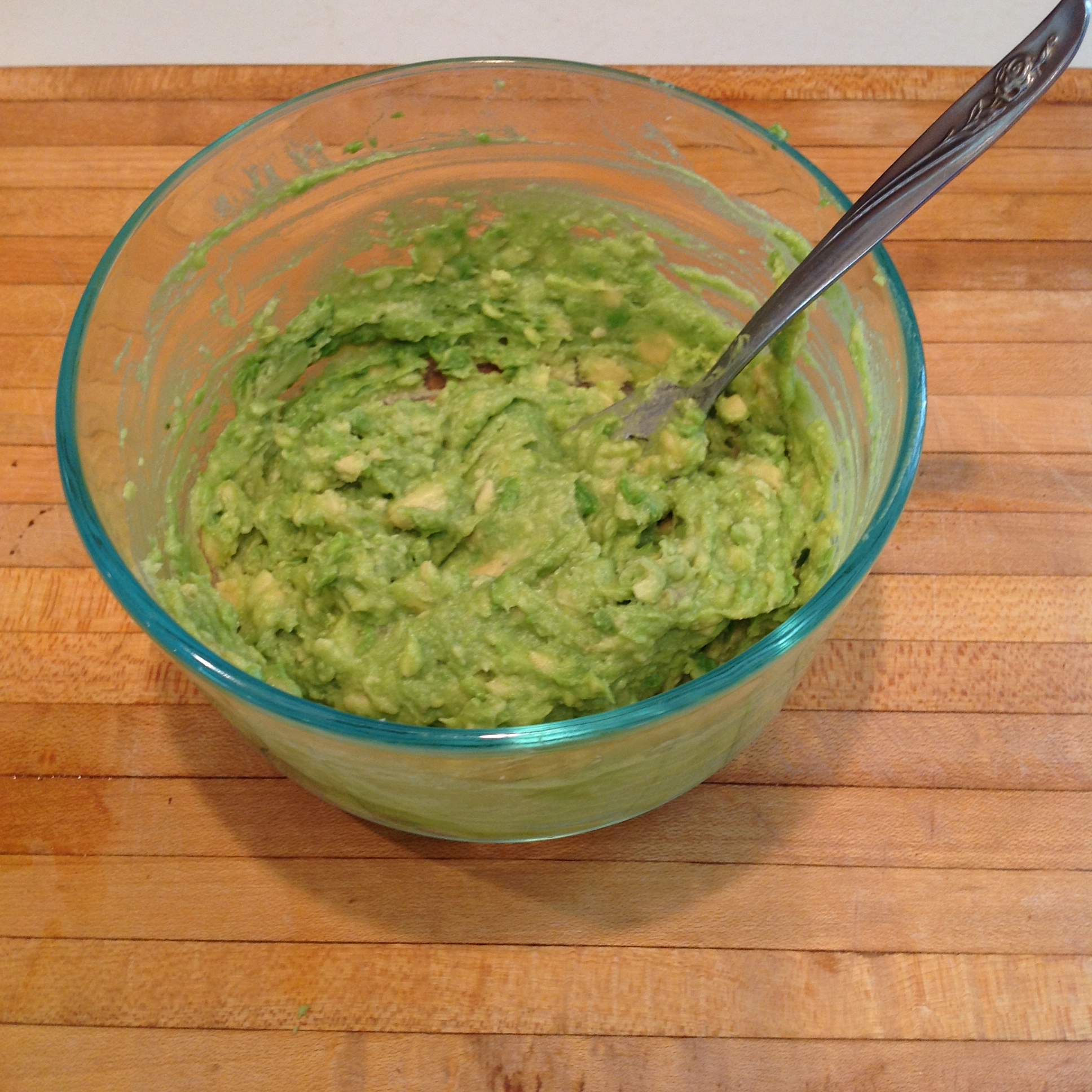 Take your fork and mash the avocado until most of the lumps are gone.