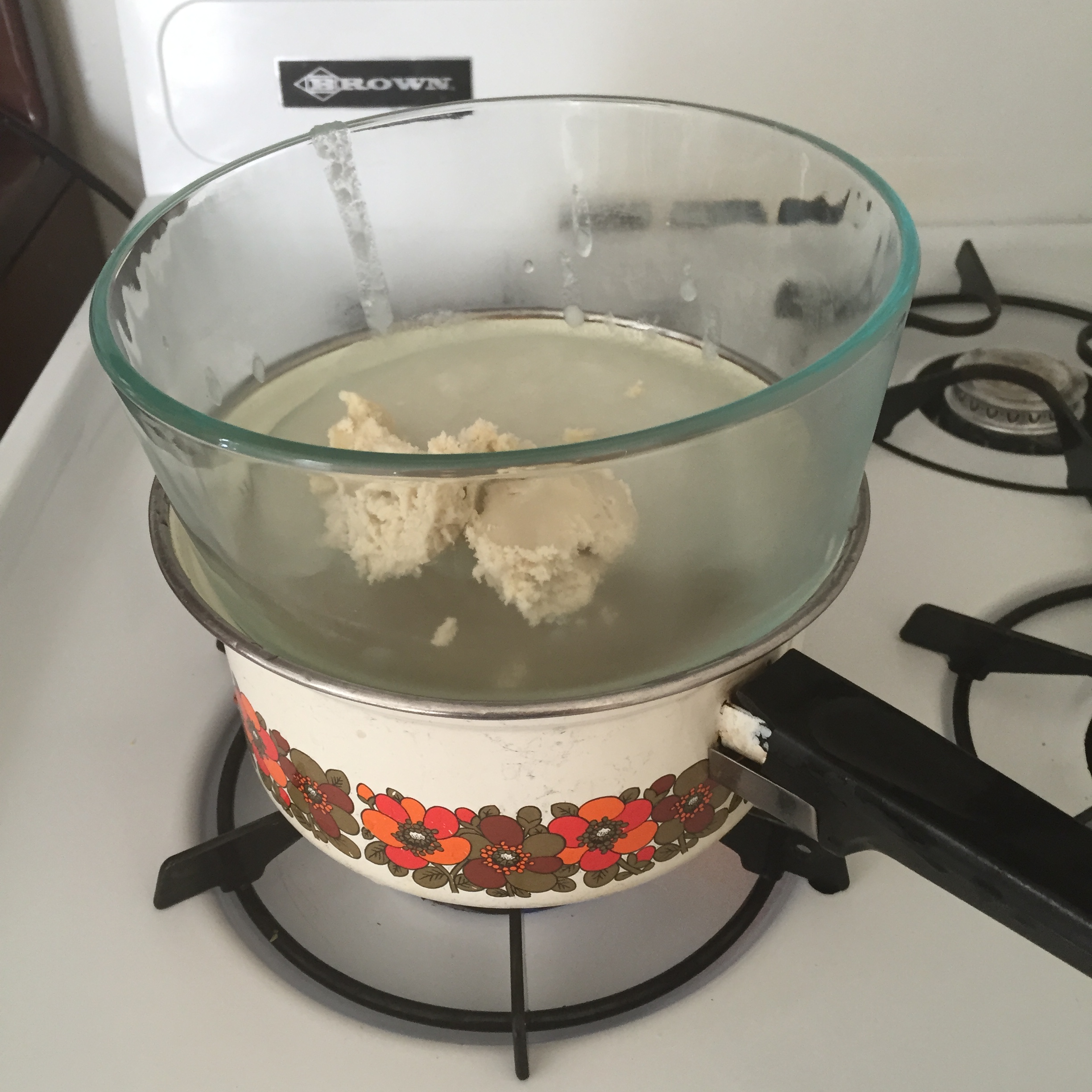 If my mixture is really lumpy, I put it back on the double boiler for a few minutes on low heat. I find that the heat helps break up those lumps, and combines everything quicker.